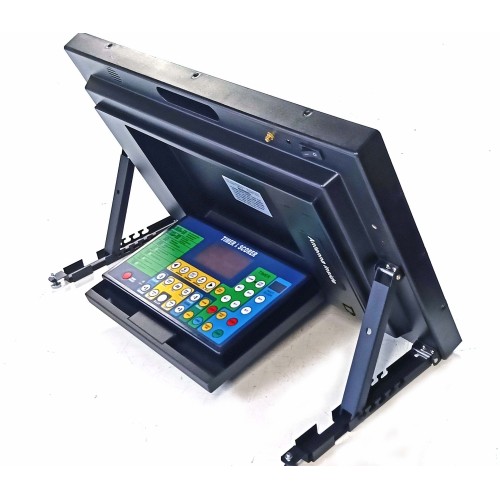 - Consolle di Comando trasportabile: con display luminoso, posta dietro al tabellone per un agevole uso da tavolo, con tastiera a membrana inattaccabile da sporco e liquidi. Dimensione cm.28x17x3